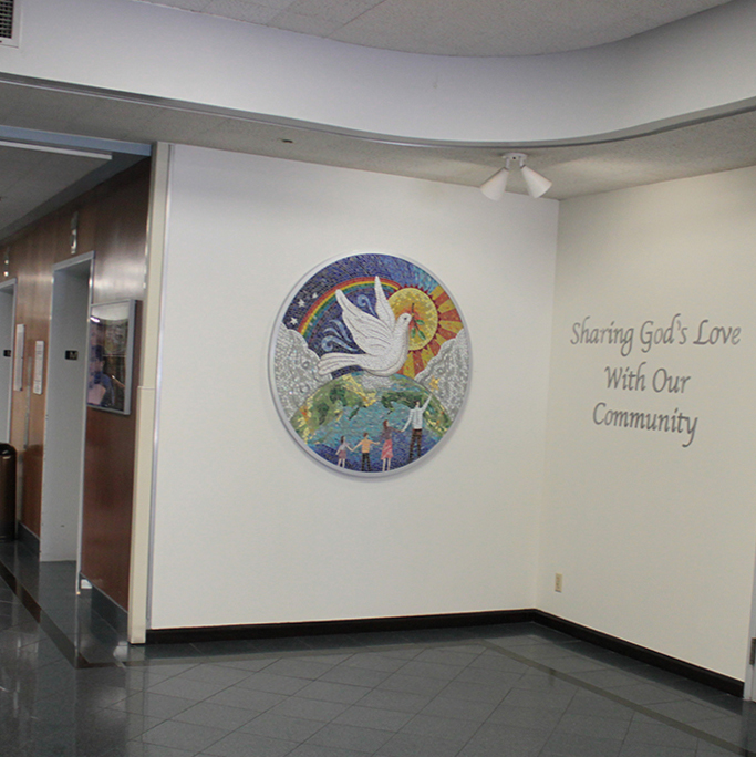 A colorful mosaic at St.Joseph Mercy Oakland by Jacqui Ridley and Morrine Maltzman.